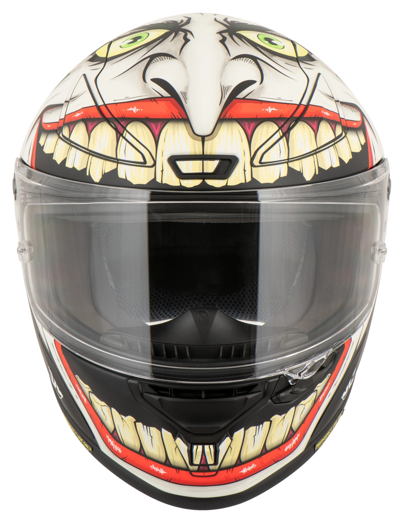 HJC RPHA 1 Joker DC Comics MC48SFIntegralhjälmTime for more MotoGP feeling on the bike, for a few laps of WorldSBK enjoyment on your superbike and a lot more fun on your favorite track. Time for the HJC *RPHA 1* full-face sports helmet. This helmet is ridden by professionals on the racetracks of the world and accompanies world-class athletes on their machines lap after lap and from victory to victory. HJC has finally obtained the FIM and ECE22.06 tests and certifications for it, so you can now ride this high-tech helmet on the road. Get ready to experience the HJC *RPHA 1*!Visor: clear, including Pinlock inner lens and tear-off filmMaterial: Premium Integrated Matrix+ (carbon/fiberglass/aramid)Helmet shell sizes: 4 (XXS-XS, S-M, L, XL-XXL )Closure: Double-DWeight: approx. 1,400 gLining: Silver Cool lining with increased sweat absorption and faster drying. Head and cheek pads are removable and washableVentilation: adjustable inlets in the forehead and upper head area, air outlets in the back of the head and adjustable chin ventilationOther: including wind and breath deflector, transparent aerodynamic spoiler, emergency cheek pads (simplify helmet removal in an emergency), double visor closure, EASY fastening system for quick visor changes, suitable for spectacle wearers.Tests: ECE 22.06 and FIM