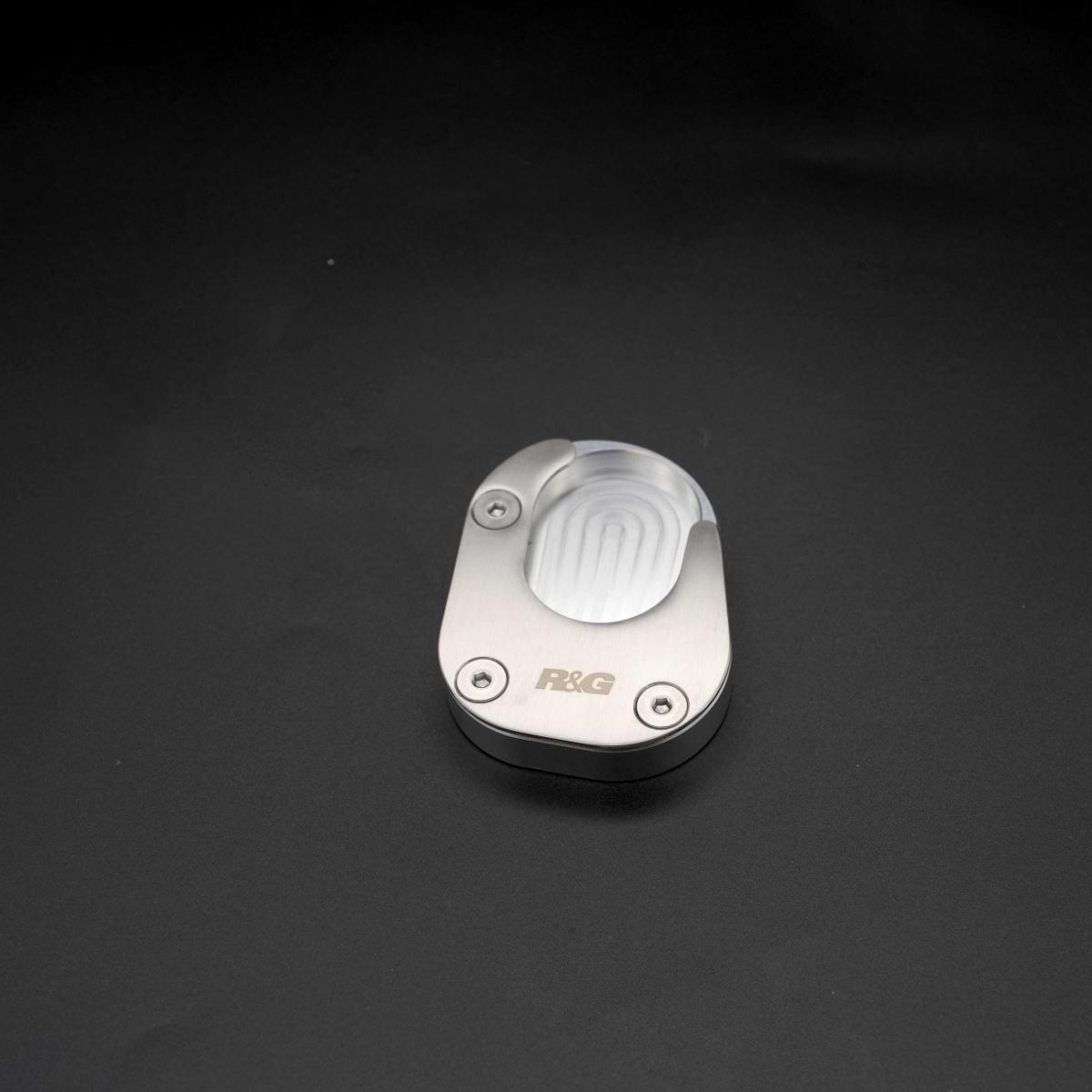 Never forget your sidestand puck again! Kickstand Shoes bolt onto the bottom of the sidestand, to enlarge the originalâs footprint by up to 100%, significantly spreading the load placed upon it, to help prevent the stand âpiercingâ the ground. Despite this enlargement, the Shoe does not affect ground clearance or interfere with the chain run during normal riding. Available for nearly 100 different bikes, covering popular adventure, sports, naked and touring machines, each Shoe is bespoke to the intended bike and sandwiches the existing stand foot with an aluminium bottom level to prevent corrosion and is topped with a stainless steel lid for strength. The product can be fitted in minutes as it is clamped together with three countersunk Allen bolts. This particular kickstand shoe has been precision machined to fit the BMW F750GS 18- F850GS 18-21 models.