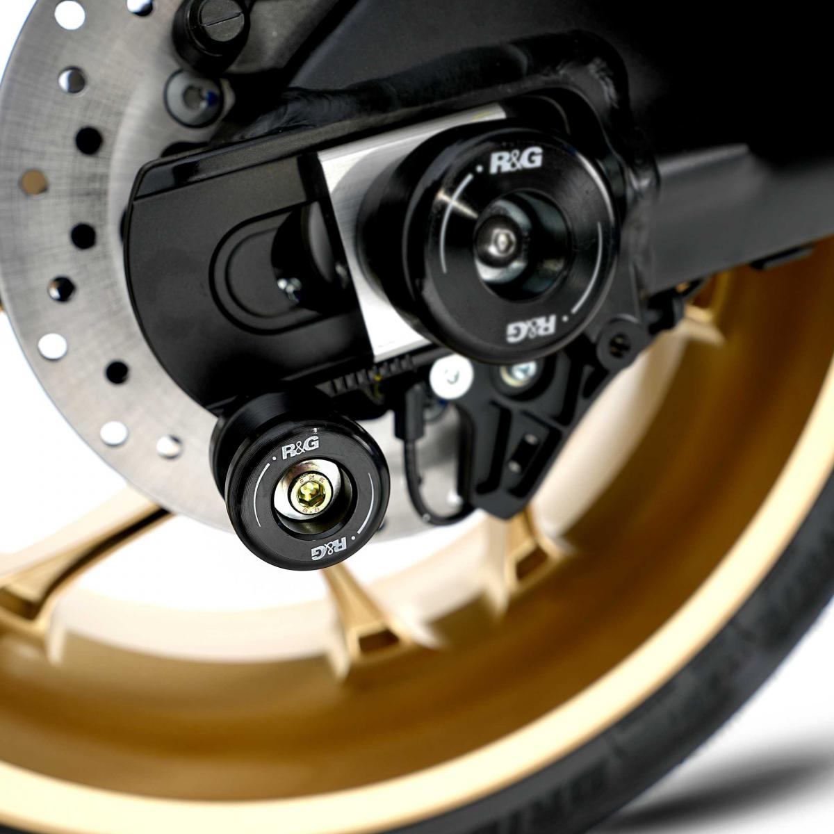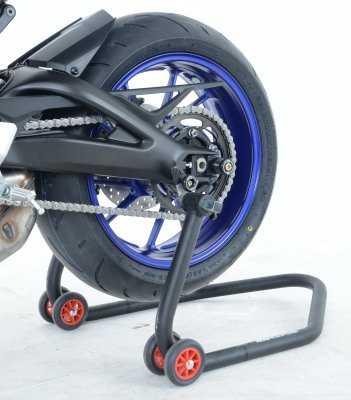 These cotton reels mount directly into the mounting points on the rear swingarm offering the best of both worlds in terms of crash protection and functionality with the ability to use R&G cotton reels, which offer excellent crash protection to those components located towards the rear as well as the ability to lift up the rear of the bike with a paddock stand for maintenance and tyre changes.