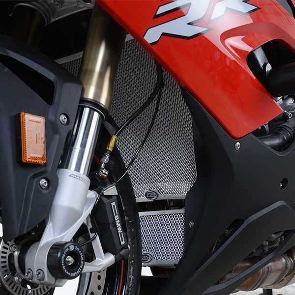 This R&G Oil Cooler Guard for the BMW S1000RR 19- & S1000R Sport M Sport 21-, M1000RR 21- & M1000R 23- is available in either Black (BK ), Titanium (TI), Dark Blue (DKBLUE), Light Blue (BLUE) or Red (RE) coat finishes for a long lasting durable finish. Made from aluminium mesh encased in an aluminium frame, the neat design adds to the looks of the bike as well as keeping the radiatoroil cooler well protected from stones and road debris kicked up by the wheel or by other road users.