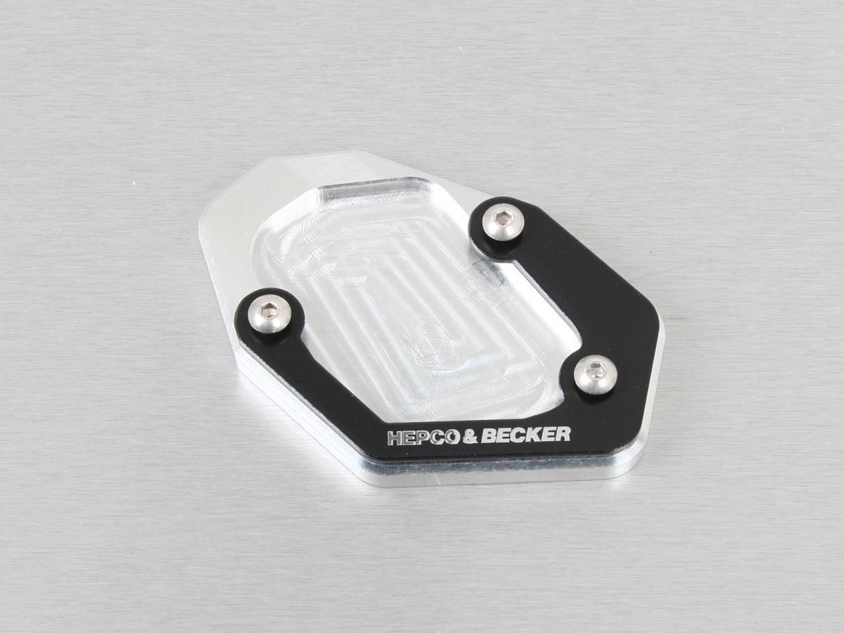 Just fully packed, or on unstable ground, the motorcycle threatens to sink easily on the side stand. A precisely shaped milled spreading plate, which is quickly screwed to the side stand and freed from this danger is now available! More than 100% larger surface area. Safe stand of the machine on all surfaces. Oxidation-proof black anodised.