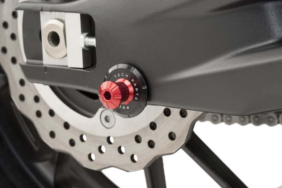 Spools work as a guide to fit a stand and easily raise your motorcycle quickly and safely. In this case we present the Spool Pro by Puig. Manufactured from an anodized aluminium billet reduced weight of 32 gr it will guarantee the protection of the swingarm from possible scratches thanks to the fact that it comes with a black nylon washer with the Puig Hi-Tech Parts etched on it. To facilitate assembly the guide for fitting the spool and its thread are machined from the same billet block. For a diameter of 6mm the reference is 9258. For a diameter of 8mm the reference is 9259. For a diameter of 10mm the references are 9260 and 9261. Bear in mind that the Spool Pro is offered in pairs and although the references fit with the vast majority of motorcycles the measurements of the piece and the thread must be checked beforehand.